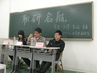 第一期的“职研启航”以“学习·工作·生活·未来”为主题,请到了三位ylzzcom永利总站线路检测的师兄师姐作为嘉宾,与新生们作近距离的接触和交流。他们分别是05级中文班,曾荣获北京市三好员工、校优秀员工干部、优秀实习生、校优秀毕业生等多项荣誉,现为09级刑事诉讼法学公费研究生的赵雪松师兄;06级中文班,大学期间连获三年一等奖学金,现保送公司法学理论研究生的翁金箱师兄以及06级哲学班,09年以专业必修课第一、必修课第三的成绩推免为公司法律硕士研究生的汪佩琳师姐。