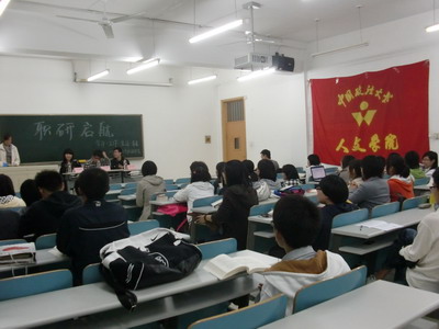 正修读研究生的赵雪松师兄以自身为例,全面地解答了同学们关于大学应如何学习,如何找到学习与社团的协调,如何处理人际关系,如何学习英语以及考研,就业等方面的问题。他形象地把老员工活做了四六开的划分,占六成的学习,特别是英语,是同学们必须首先重视的;其次,社团工作占四成之多是不可忽视的,师兄认为,参加社团不仅锻炼我们写作、口才、领导、协调等多方面的能力,更重要的是我们能通过参与社团认识不同的人,而我们的人力资源和朋友往往就在这些人里面。另外,师兄也风趣幽默地介绍了自己如何处理人际关系、如何处理感情、如何锻造自己的人格等问题,博得了在场同学一次又一次的掌声。