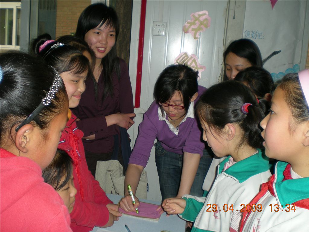 2009年4月29日,2008级研究生党支部一行20人来到龚村校区,同五年级三班的小朋友们一起开展了我们学习实践科学发展观的特色活动。活动的主题是与孩子们进行互动游戏,以引导孩子们树立正确的奋斗方向。