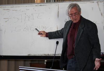 莱文教授的讲座从马克思对于市民社会的研究开始,分析了西方思想史上对市民社会的不同论述,认为马克思所讲的市民社会是一种有别于“国家”的人民共同体。在此基础上,莱文教授阐释了马克思讲的国家消亡的含义,他认为,马克思所说的“国家消亡”之中的“国家”是在state意义上的,而非government意义上的,因此,马克思的“政治”概念也有对应于“国家”之不同含义的两种意义。然后他澄清了马克思思想中经常被误解的几个概念:“无产阶级专政”、“无阶级社会”和“经济平均主义”。最后莱文论述了马克思、恩格斯之间的思想差异以及列宁和斯大林不同的继承理路。