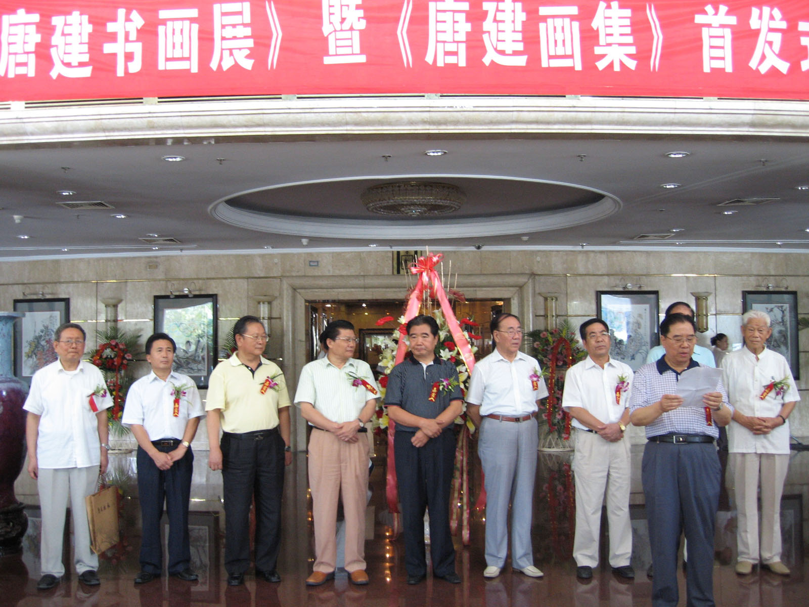 唐建书画展暨《唐建书画集》首发式日前在济南山东良友富临大厦隆重开幕。山东省委统战部长、省政协副主席齐乃贵、山东省法院原经理宇培杲、尹忠显、山东省政府顾问山东省公安厅原厅长孟庆丰等省领导、山东文联党组主席、党组书记于钦彦以及党政军、新闻界、艺术界、教育界等近千人出席开幕式并参观画展。山东省委组织部原常务副部长王光先在开幕式上讲话,山东省美协副主席、山东省画院经理陈国立代表艺术界致辞。