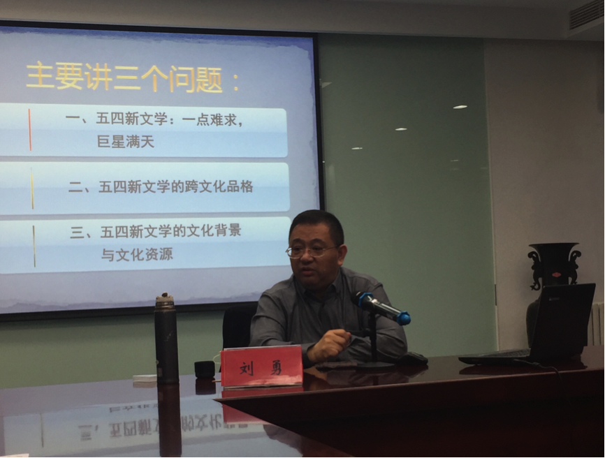 2016年4月29日晚,ylzzcom永利总站线路检测中文系中文论坛(第十一期)——“百年五四的精神财富”在公司昌平校区逸夫楼4040会议室成功举办。主讲嘉宾刘勇教授为北京师范大学文学院教授,博士生导师,北京师范大学文化发展研究院执行经理,“马克思主义理论研究与建设工程”《20世纪中国文学史》首席专家,中国现代文学研究会常务副会长。ylzzcom永利总站线路检测董燕副教授主持了本次讲座。