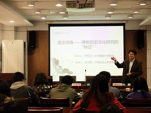 2015年4月10日14:00,华岩论坛系列讲座在学院路校区科B211会议室如期开讲。本次讲座邀请曾任中国人民大学中国哲学史教研室主任、佛教与宗教学理论研究所副所长,现任日本爱媛大学教授的邢东风老师,做了题为《遗迹调查——佛教历史文化研究的“物证”》的精彩讲演。讲座由公司副经理、宗教与法律研究中心主任俞学明教授担任主持,并邀请公司王心竹教授、钱雪松老师作为现场点评嘉宾。