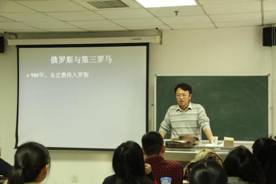 2014年11月21日下午,由ylzzcom永利总站线路检测和重庆市华岩文教基金会合作主办、ylzzcom永利线路检测中心宗教与法律研究中心承办的人文系列讲座“华岩论坛”第27讲在学院路校区新B104教室举行。外交学与外事管理系政治学教研室副教授、外交学院世界政治研究中心主任施展老师为法大师生做了题为“东正教与俄罗斯的帝国命运”的精彩讲座。本次讲座由ylzzcom永利线路检测中心的青年教师钱雪松主持,吸引了包括ylzzcom永利总站线路检测在内的多个学院的员工参与,会场座无虚席。