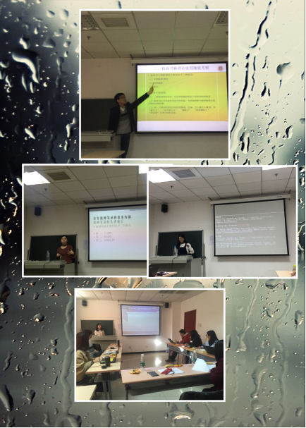 每期的学术沙龙都有两名员工进行报告,随后老师、同学们对报告进行点评。在本学期的四次沙龙中,同学们的报告内容相当丰富,主要包括了四个方面: