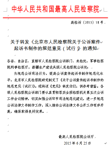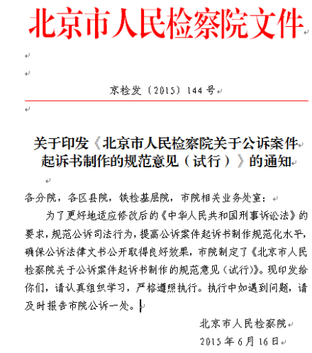 2014年9月,公司法律语言研究中心的王洁教授、张彦副教授、崔玉珍副教授受北京市人民检察院的委托,对北京市人民检察院(含区县)的公诉法律文书进行规范化的实证研究,并成立了“公诉法律文书规范性问题实证研究”项目。2015年,该项目取得了重大进展,北京市人民检察院在项目相关报告的基础上于6月份向全市各级检察院印发了《北京市人民检察院关于公诉案件起诉书制作的规范意见》(京检发〔2015〕144号文件),这在法律实践界引起广泛的热议,也受到了很多法律人的好评和肯定。《北京市人民检察院关于公诉案件起诉书制作的规范意见》也受到了最高人民检察院的肯定,全文照发(高检诉〔2015〕18号文件),曹建明检察长也给予了肯定,认为这“把学术成果直接运用到了司法实践中”。课题组根据项目的研究编撰了《检察机关刑事起诉书制作要义》一书。