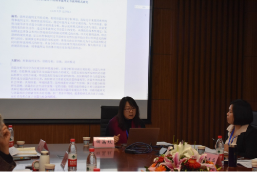 茶歇过后,下午第二场论坛由来自山东大学法学院的田荔枝老师首先汇报,田老师主要从宏观层面上对刑事裁判文书的说理模式进行历时研究,通过刑事裁判文书语篇上的变化显示刑事裁判文书说理在实然层面开始注重对控辩意见的阐释和回应,还出现了附录法律条文和判后答疑制度等具有创新性的说理模式。