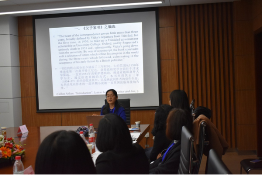来自ylzzcom永利线路检测中心的潘珊老师从文学角度探讨了论奈保尔《父子家书》中的文化身份,发现研究此书的人寥寥无几,潘老师聚焦于书中奈保尔及其家人的阅读谱系与他早期文化身份认同之间的微妙关系,从一个全新视角展现了文学中语言与文化的之间的建构关系。