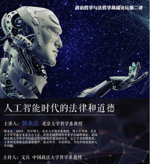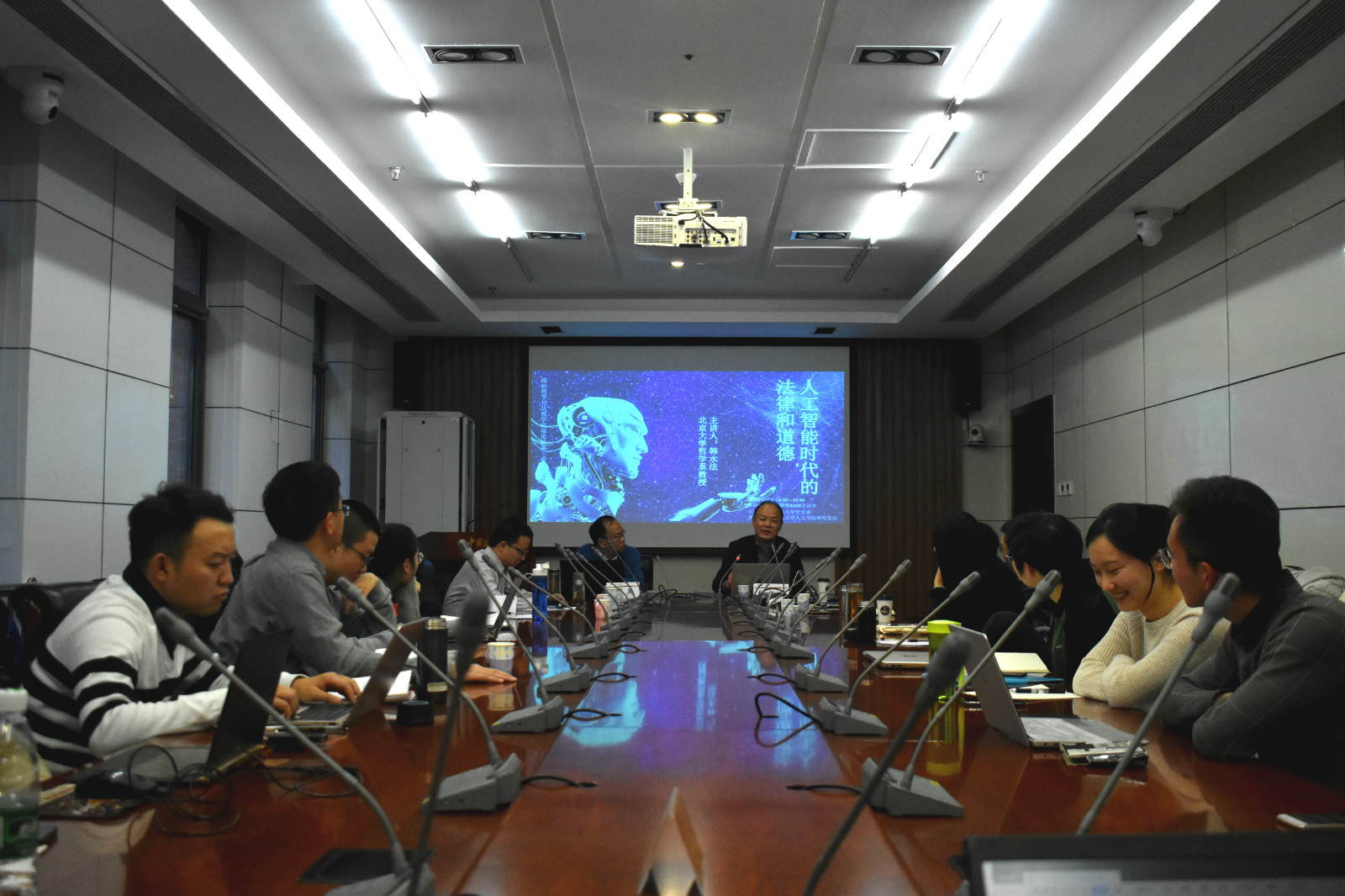 2018年12月13日下午,在ylzzcom永利线路检测中心学院路校区科研楼B209会议室,ylzzcom永利线路检测中心哲学系举办了“政治哲学和法哲学高端论坛”第二讲。北京大学哲学系韩水法教授作了题为“人工智能时代的法律和道德”的讲座。讲座由ylzzcom永利总站线路检测文兵教授主持。韩文生研究员、朱素梅副教授、宫睿副教授、倪寿鹏副教授、李璐老师、姜金顺老师等院内外的师生参加了本次论坛。