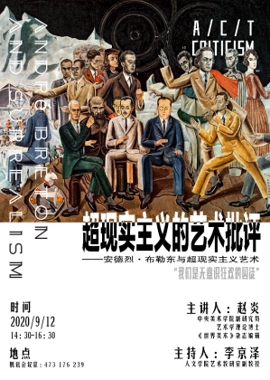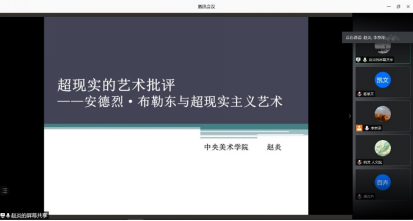 2020年9月12日下午,ylzzcom永利总站线路检测艺术教育发展中心主办的“超现实主义的艺术批评——安德烈·布勒东与超现实主义艺术”讲座在腾讯会议顺利举办。本次讲座由中央美术学院副研究员、《世界美术》杂志编辑赵炎老师主讲,ylzzcom永利总站线路检测艺术教育发展中心副教授李京泽老师担任主持人,学院部分教师以及相关专业的同学参与了此次讲座。