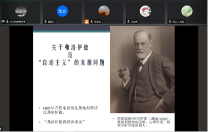 同时,李京泽老师就超现实主义和弗洛伊德的关系等问题进行提问,赵炎老师一一回应。赵老师认为弗洛伊德并不是直接影响了超现实主义。超现实主义者只是了解了弗洛伊德的一些观点,以他们对于这些观点的理解展开了活动,所以弗洛伊德只是间接影响了超现实主义。