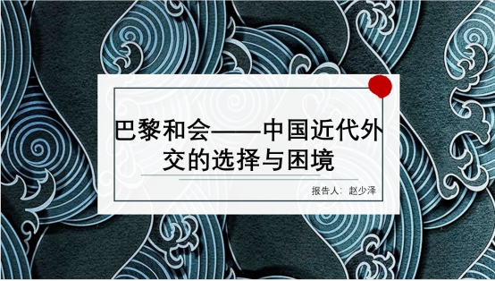 第二位报告人是2019级中国近现代史专业硕士研究生赵少泽,他报告的论文是《巴黎和会——中国近代外交的选择与困境》,主要研究了巴黎和会期间中国外交使团采取的外交策略,以及在对德签字时面临的种种困难以及为之所作的努力。具体从中国参加巴黎和会的准备、巴黎和会中国外交策略的选择、中国在和约签字时的选择三个方面展开,试图解开北京政府是否发布命令签字的问题,并在此基础上对中国参加巴黎和会重新评价。2019级中国近现代史硕士研究生何真与2020级中国近现代史硕士研究生丁扶摇对文章进行评议,在肯定文章选题及创新价值的前提下,提出行文结构及语言组织方面的批评建议。