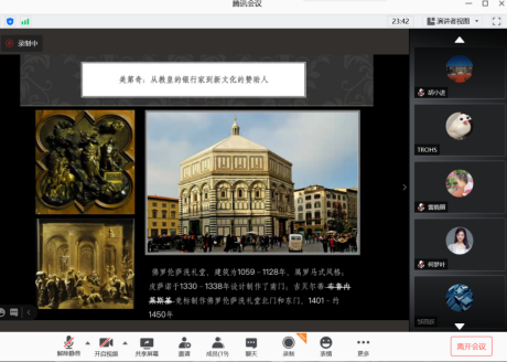 2020年11月22日下午,ylzzcom永利总站线路检测艺术教研室主办的法大美育论坛系列讲座之“意大利文艺复兴时期陵墓纪念碑风格及意义”讲座在腾讯会议顺利举办。本次讲座由北方工业大学建筑与艺术学院副教授沈莹主讲,ylzzcom永利总站线路检测艺术教育发展中心副教授李京泽担任主持人,学院部分教师以及相关专业的同学参与了此次会议。