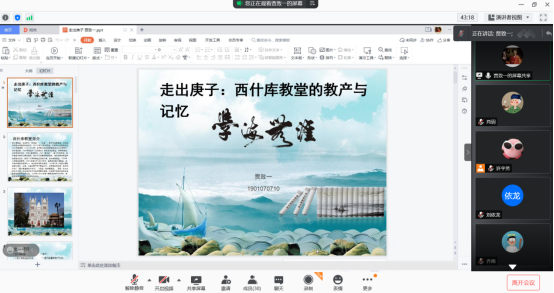 第二位报告人是2019级中国近现代史硕士研究生贾致一,她报告的论文是《走出庚子:西什库教堂的教产与记忆》。论文讨论的是“义和团运动高潮”背后的西什库教堂,从主流政治叙事中抽离出来关注西什库教堂被人忽略的教产和记忆。2019级中国近现代史硕士研究生肖玥对论文进行评议,认为论文结构合理,层次清晰,逻辑顺畅,档案资料丰富,但主题不够鲜明,例证须加强说服力,史料类型有待丰富。